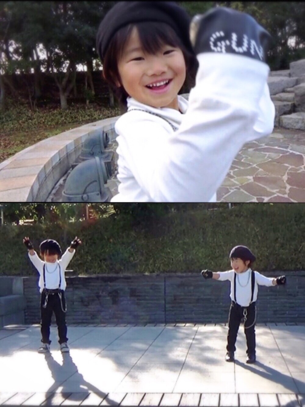 ブラック系のファッション雑貨を着用したキッズの冬コーディネートの1枚目の写真