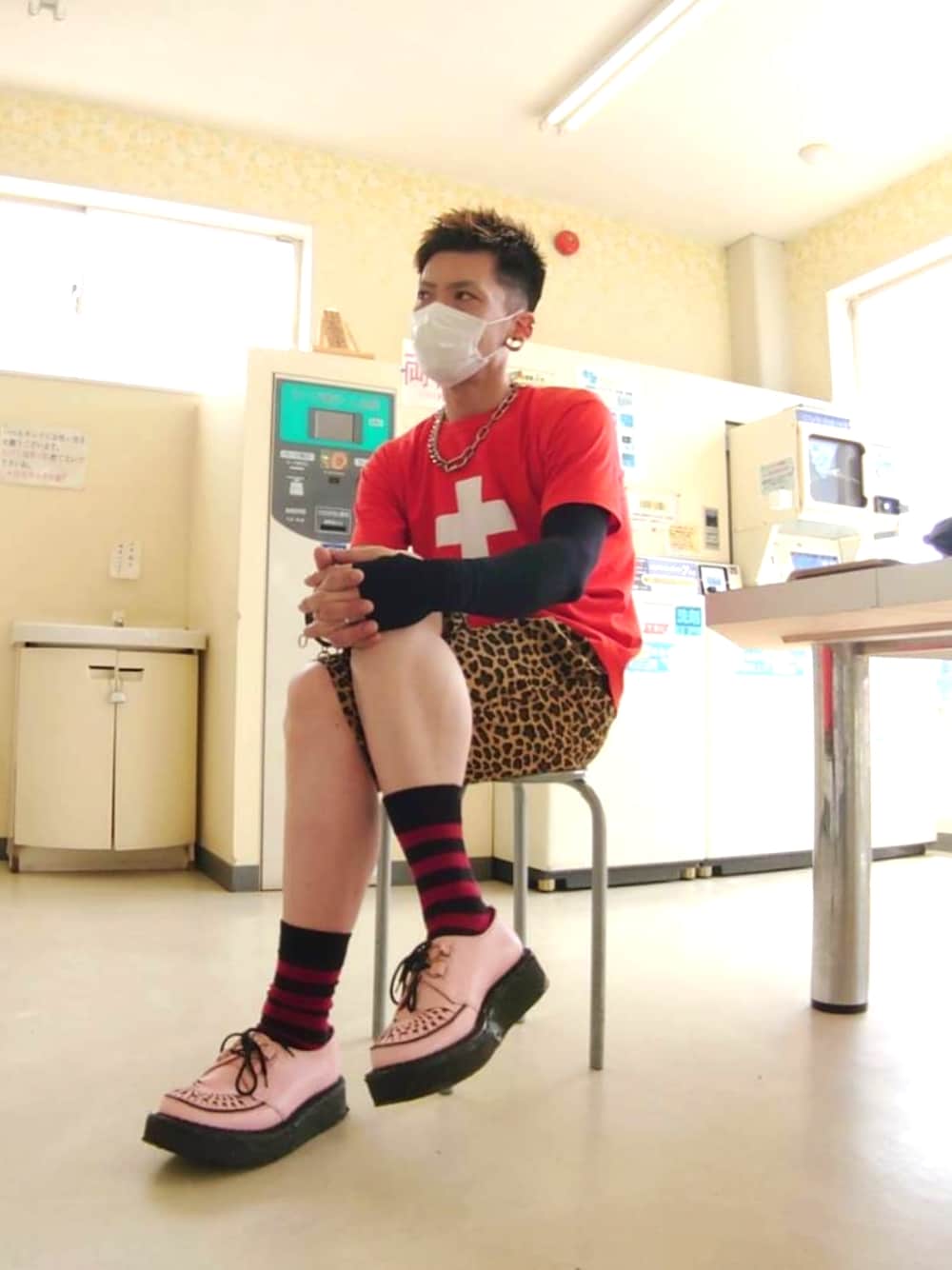 暑いですね~☀ウエアハウスのデニムを乾燥機かけに来ました🧺 あ、ハーフパンツ履きたくてスネ毛処理しました🦵 肌が弱いので痛痒い1日です🤣 ラバーソールは歩きながら小石を拾う靴👞