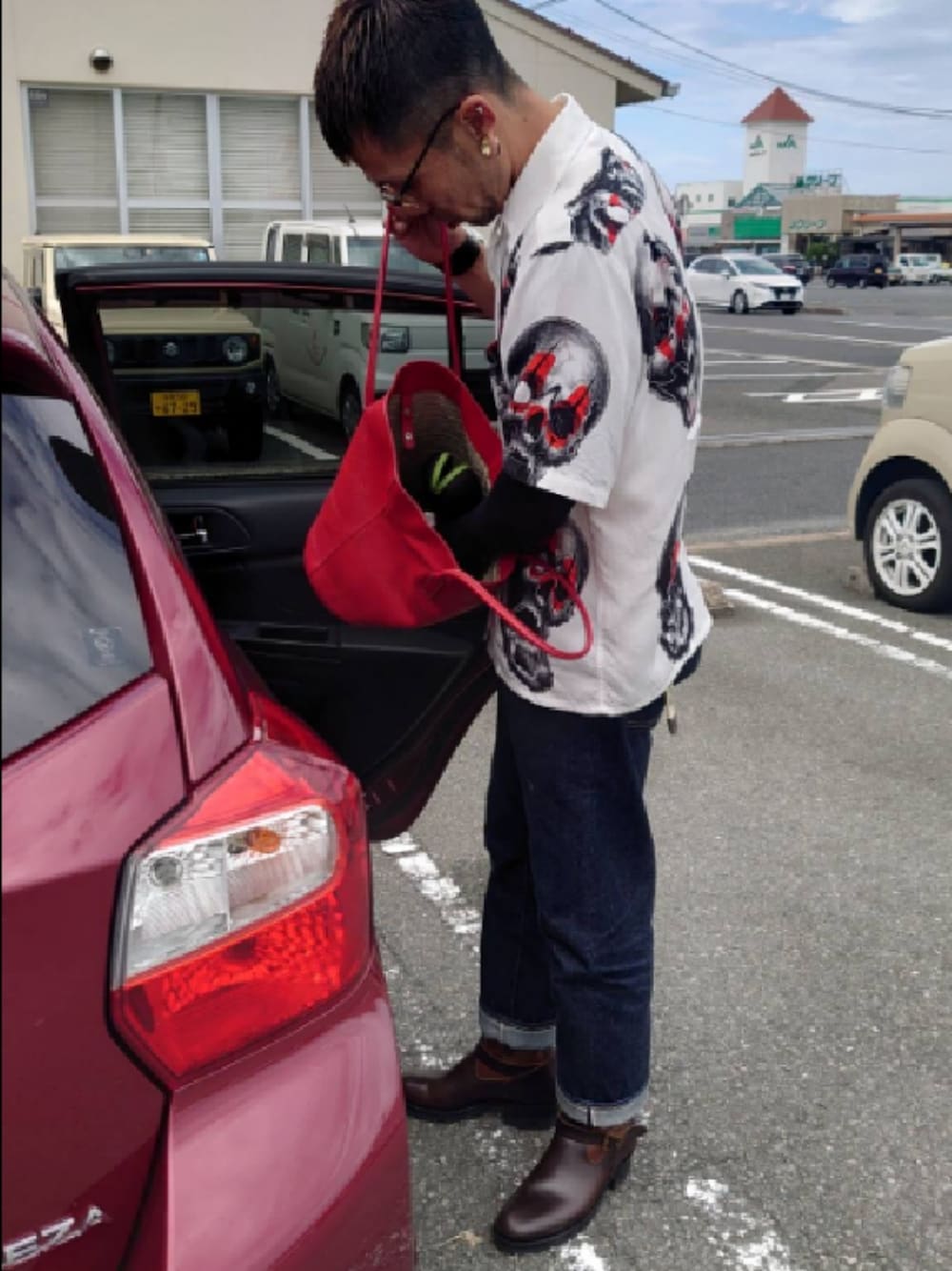 たけしゃたばのトートバッグを使ったコーディネート