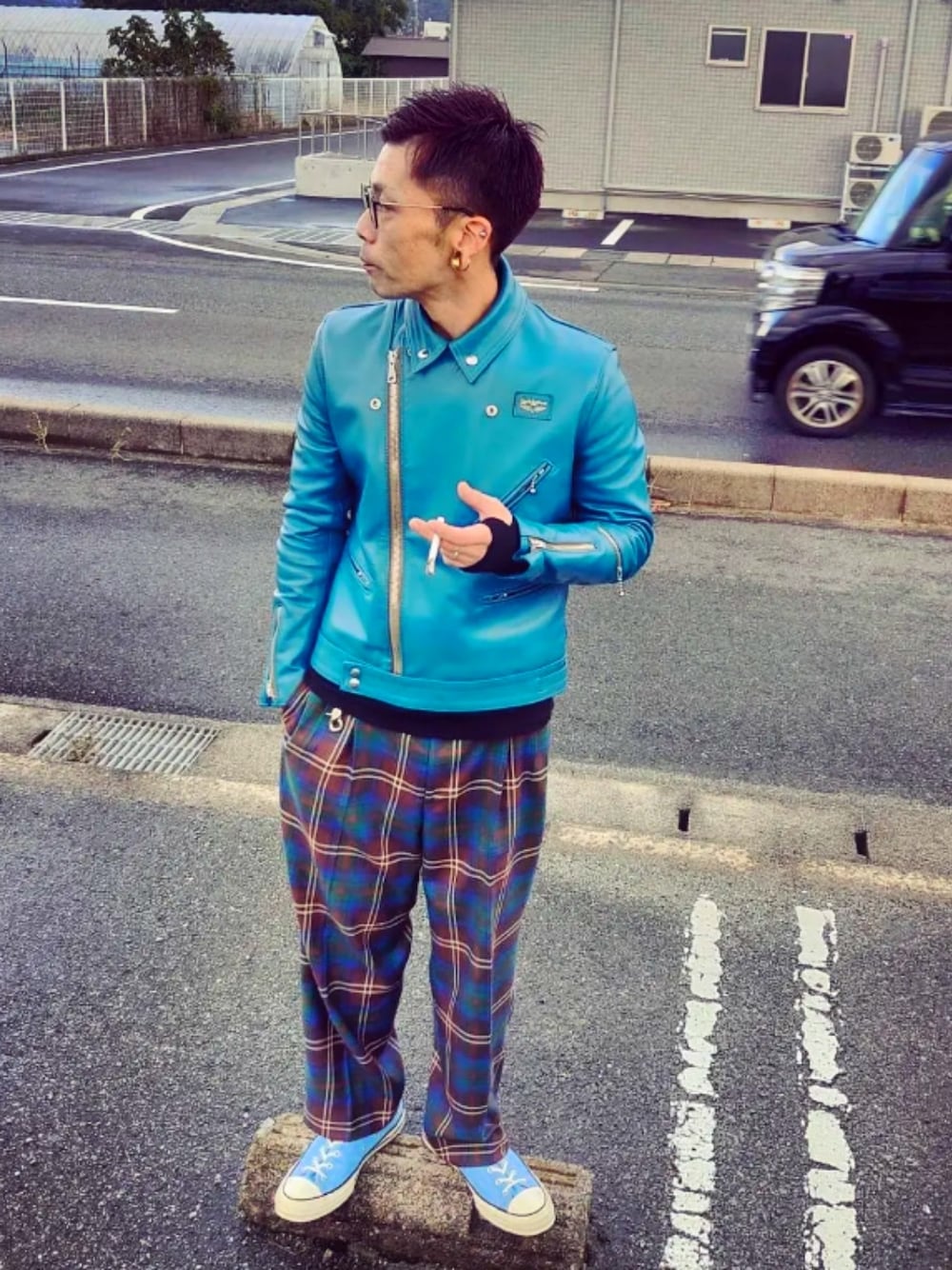 たけしゃたばのライダースジャケットを使ったコーディネート