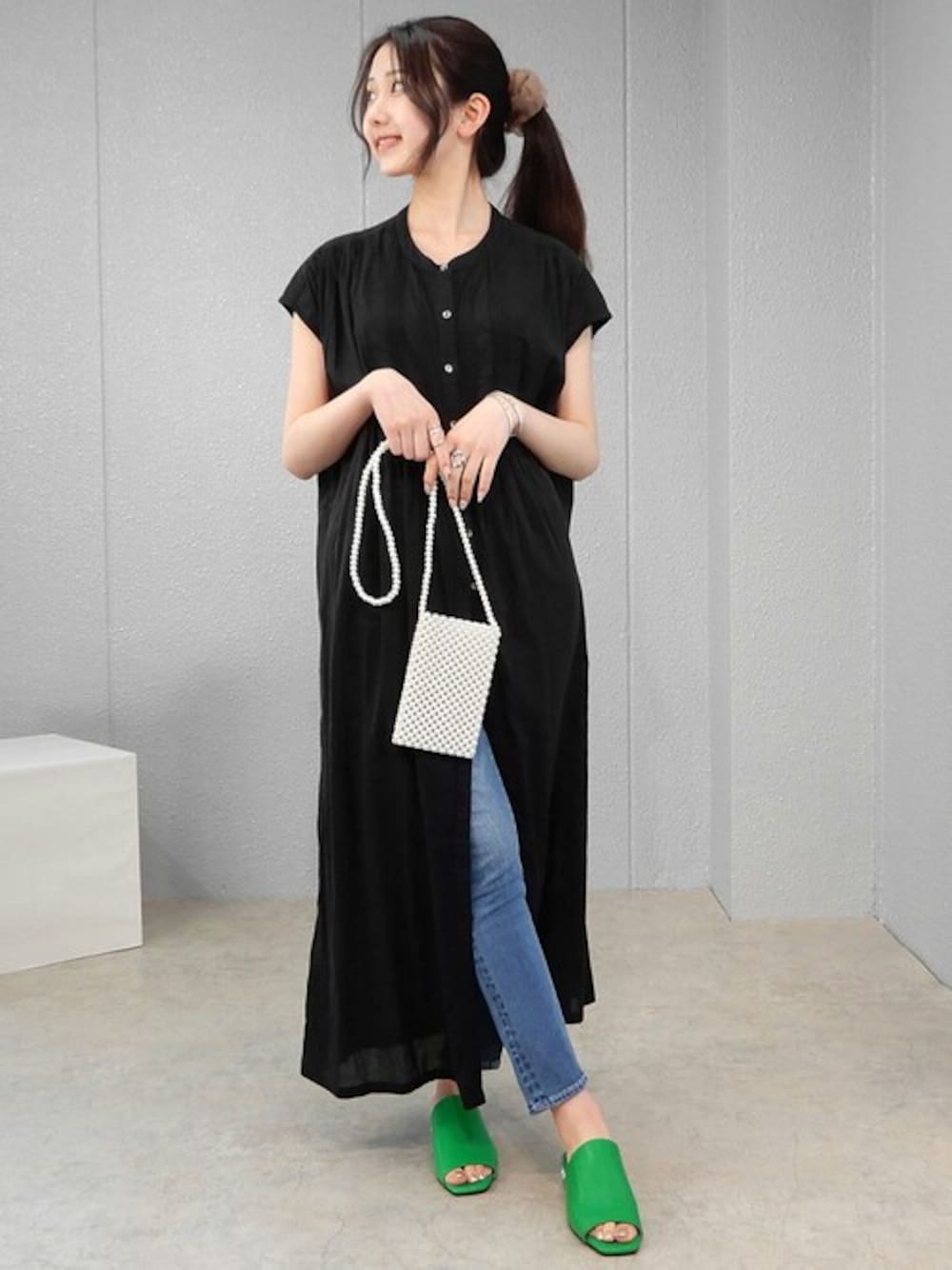 Color Shoes code🐊🖤 グリーンとパールヒールがアイキャッチーになるワンポイントコーデ パールヒールミュールはぺたんこで楽チンなのに お上品にきれいめな印象にできる主役級アイテムです! カラー展開はブラック、ブルー、グリーン、ピンクゴールドの4色展開です。 詳しくはZOZOTOWNにてご覧くださいませ🧏✨