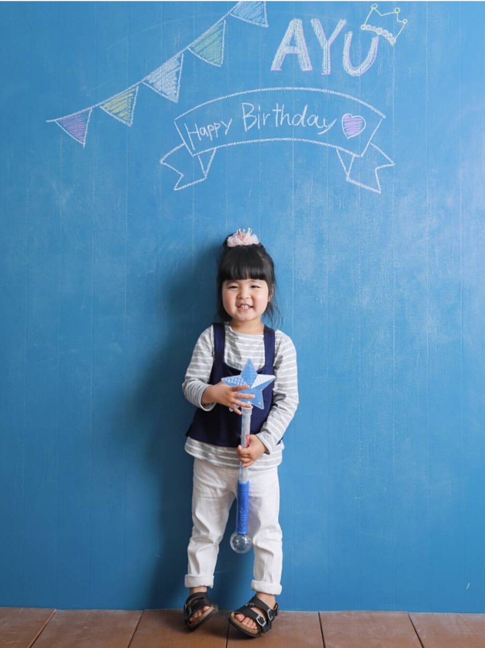 4歳の誕生日記念にハイチーズしました(^^) このあと、ご本人の希望によりプリンセスのドレスでの撮影もして、ご満悦のayuyuでした(^_^)