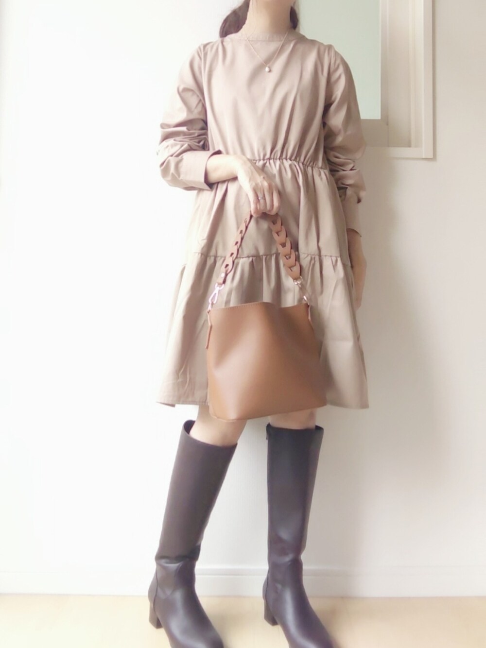 いつもご覧いただきありがとうございます😆いいね❤フォロー、お気に入りうれしいです✨フォローしてくれた方はフォロバします👍お返しはフォロワー様優先👣💞 何年振り?って位 久しぶりのひざ上スカート、 20代のときよく着ていたけど 大人になると難しい。。ミニスカート😇 こんな太い脚を人様にお見せするのも 申し訳ない… みたいな気持ちになってしまって もう10年くらい着ていなかった😂 でもこのワンピは どうしてもどうしても着たかった🥺❤️ そんなときはロングブーツが頼りですね👢👢 アクセサリーはパールどんぐりネックレス♡ どんぐりの形をしたパールのネックレスです🐿️✨ 私がプロデュースするブランド minicocoTOKYOでご購入いただけます。 💍▼アクセサリー購入方法▼💍 WEARプロフィール欄アイコンから Instagram・SHOPに簡単アクセスできます!Instagram ➸ @chi_ichans インスタプロフィール欄 minneURLからも注文承っております☺︎ Creemaでも販売しております♡