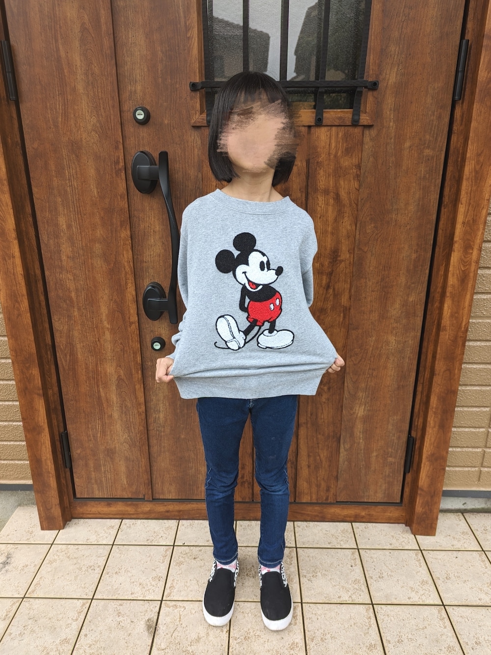 見ていただきありがとうございます😊 寒かったので古着のトレーナー♡ ママと兼用のシューズ( ᐛ ) 身長136センチ デニム140センチ トレーナー150センチ 靴22センチ