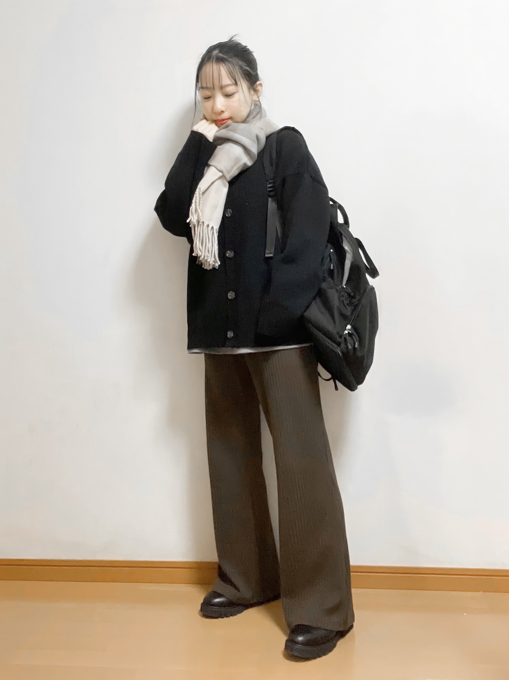 ♡親友と何時間でもおしゃべり♡ 楽ちんコーデ♪ . 気の置けない親友とは ついついたくさん話しちゃう✨ こんな日は洒落見え楽ちんコーデでキマリ❤️ . @discoat_official /カーディガン、トップス、マフラー 前投稿のインナー着てます♪ 厚手でおしりまで隠れる丈なのに細かい柄と小さなロゴが可愛い💕 カーディガンも同じくらいの丈で ゆったりしすぎないので ウェーブタイプさんにおすすめです♡ . @andme_official /リブパンツ カラバリ豊富なのが嬉しい😆 149cmで、ウエスト2回折ってブーツに合わせてます♪ 厚底合わせが今っぽい♡ フレアパンツの広がり始めが膝上にくるので足長効果も✨ . @ur_rodesko /コンバットブーツ @studioclip /リュック . insta ▷ @___mai.2