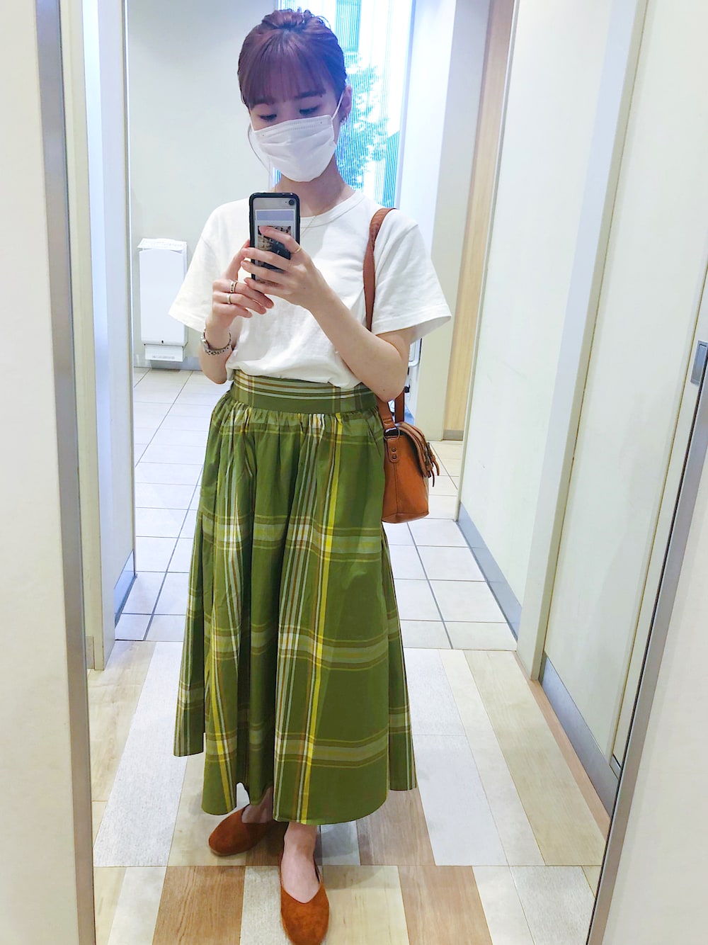 彼のお仕事帰りにラーメン屋にいった✌️ ラーメンだからラフに3色ベースにまとめて髪はお団子に🍜 可愛いなあって思ってたgreenのスカートゲットした🥰