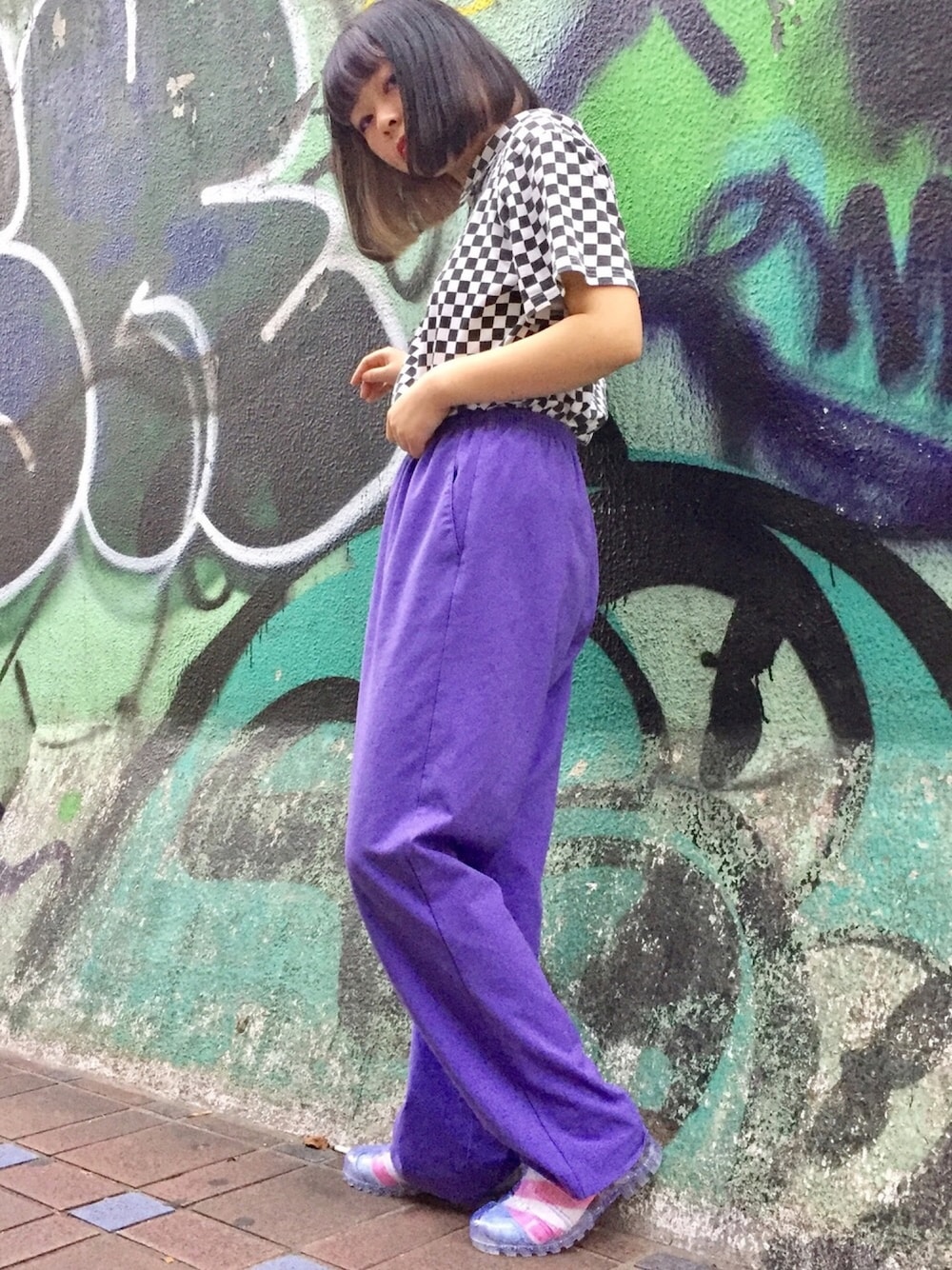 ムラサキのパンツゆったりしてて履きやすい!それにサンダルだったから楽チンだった昨日!高円寺に行ってかわいい雑貨買ったよ~‼︎