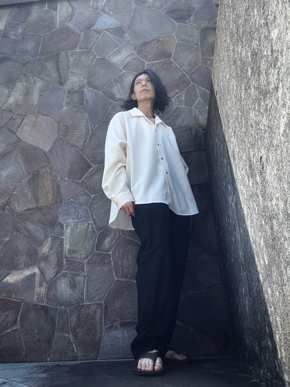 白シャツ✖️黒スラックス シンプルで定番だけど良いよね♪