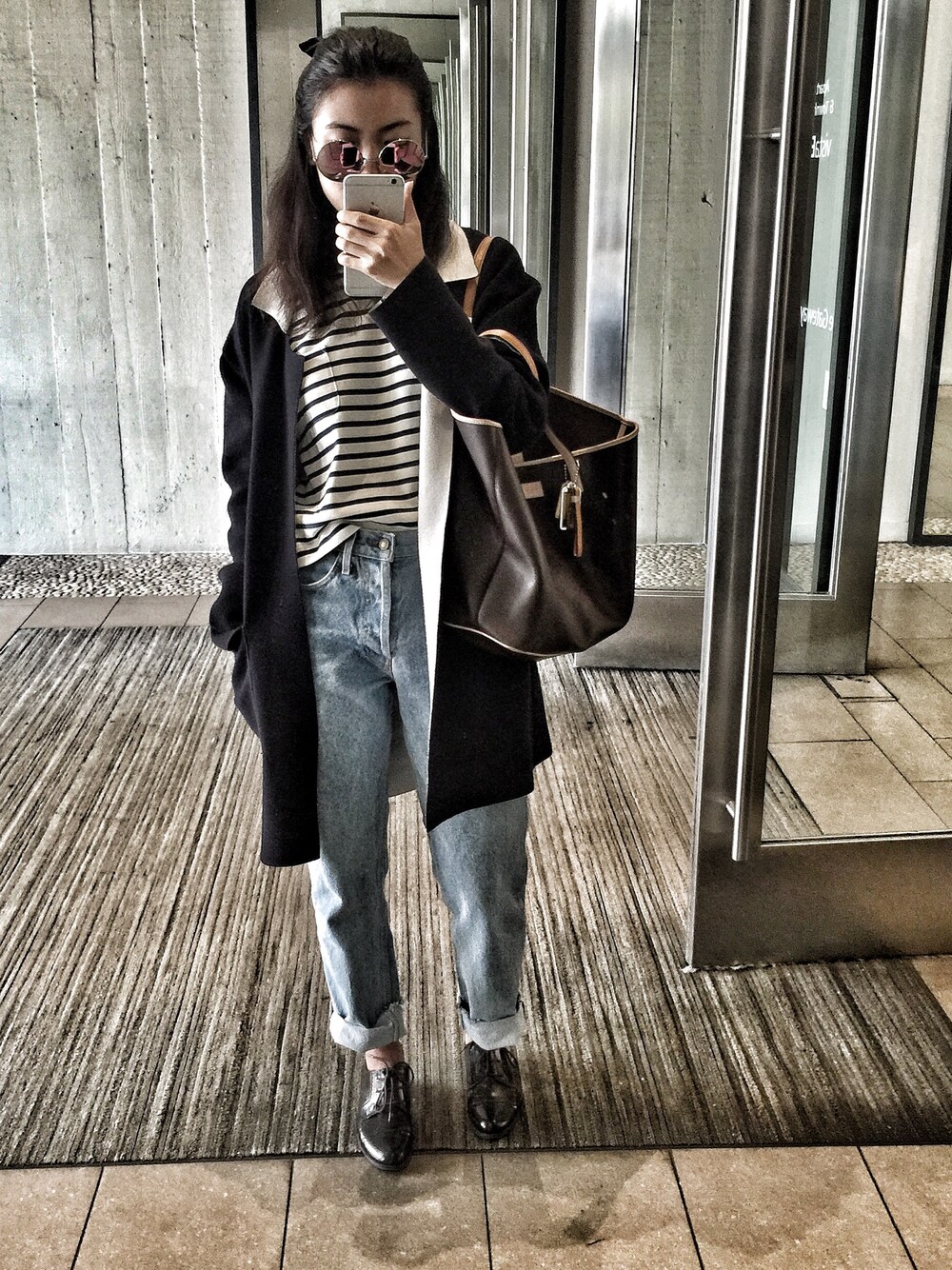How to wear fashionably warm in a cold summer ? ☝️ Medium sleeves tee top ☝️ Oversize yarn coat ☝️ Boyfriend jeans ☝️ Oxford shoes