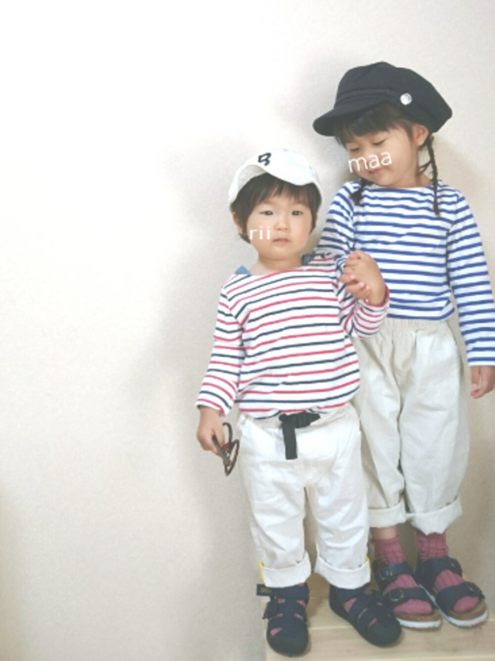 もう一週間たっちゃったけど💦 めぐっぺ親子とお花見してきました🌸 ボーダー×サロペのリンクコーデ☺ みんなで手繋いで歩いてるの可愛すぎた😳 大窓はトップスを交換して着せてます✨ 息子が着てるの実はワンピ😂 インしちゃえば分からん分からん😏✨←福岡の人はCM風に読んでねww いつも見ていただきありがとうございます♥