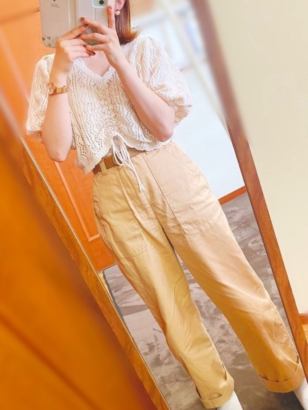 ベージュコーデ🐶 ems exciteのシャーリングニットを レースインナー合わせで着てみました❁︎ ニットのザクザク感とパフスリーブが とっても可愛いです.*・゚ シャーリングの部分は くしゅくしゅ具合をお好みで調節できます♪*゚ ┈┈┈┈┈┈┈┈┈┈ 今日も見ていただきありがとうございます🌼