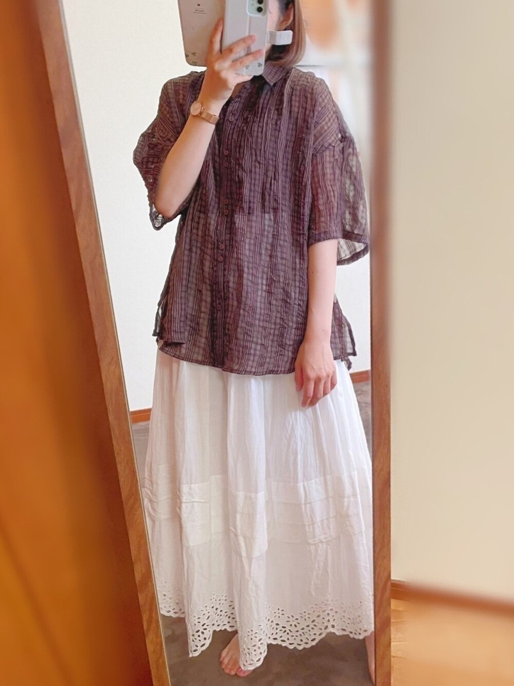 maroru✲*゚のシャツ/ブラウス「しわ加工シアーチェック半袖シャツ」を使ったコーディネート