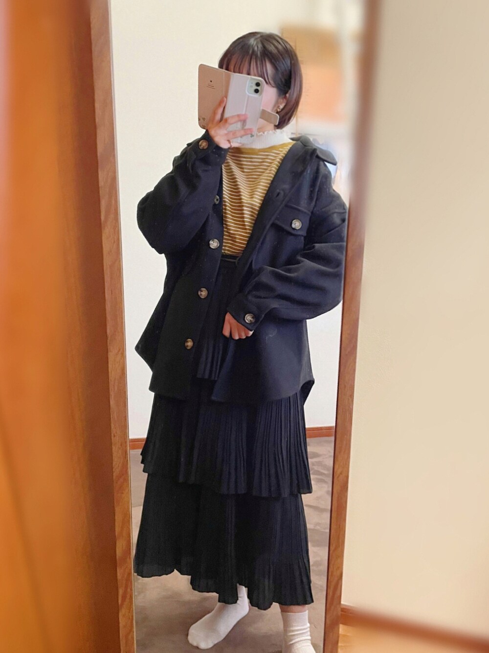 プチプラコーデ🐧 CPOジャケットはGRLで1,599円でした♪ ブラックメインのコーデに差し色でマスタードを✲*゚ ┈┈┈┈┈┈┈┈┈┈ 今日も見ていただきありがとうございます🌼 少しでも参考になれば嬉しいです´`*