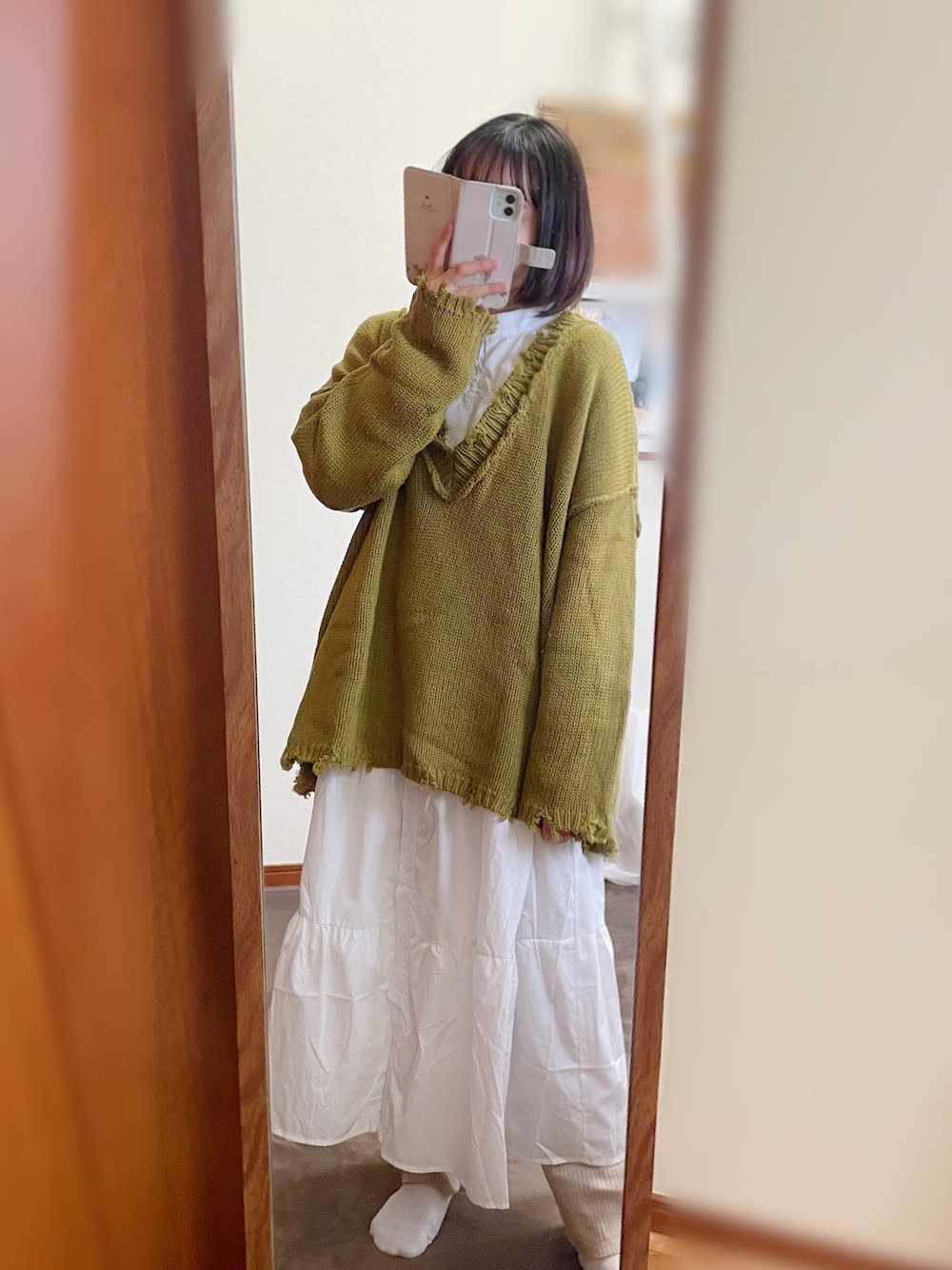maroru✲*゚のニット/セーター「ダメージVネックニットプルオーバー」を使ったコーディネート
