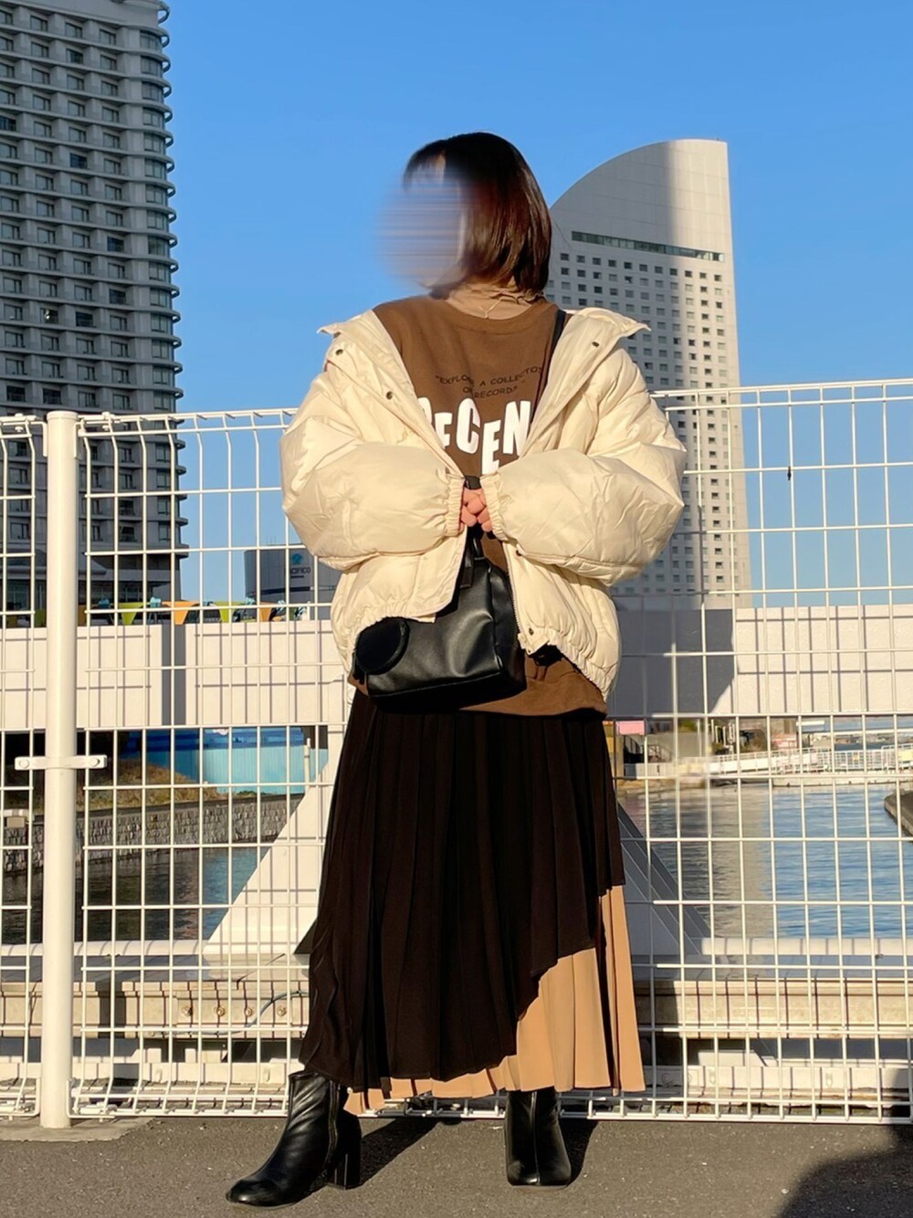 3色コーデ🐧 モード系のスカートにトレーナーを合わせて 大人カジュアルにしました❁︎ 屋外で遊ぶ時はダウンジャケットで防寒対策を♪ (+タイツも履いてます🤫) ラフになりすぎないよう 黒のブーツとバックを合わせたのがポイントです✾ ┈┈┈┈┈┈┈┈┈┈ 今日も見ていただきありがとうございます🌼 少しでも参考になれば嬉しいです´`* maroru✲*゚