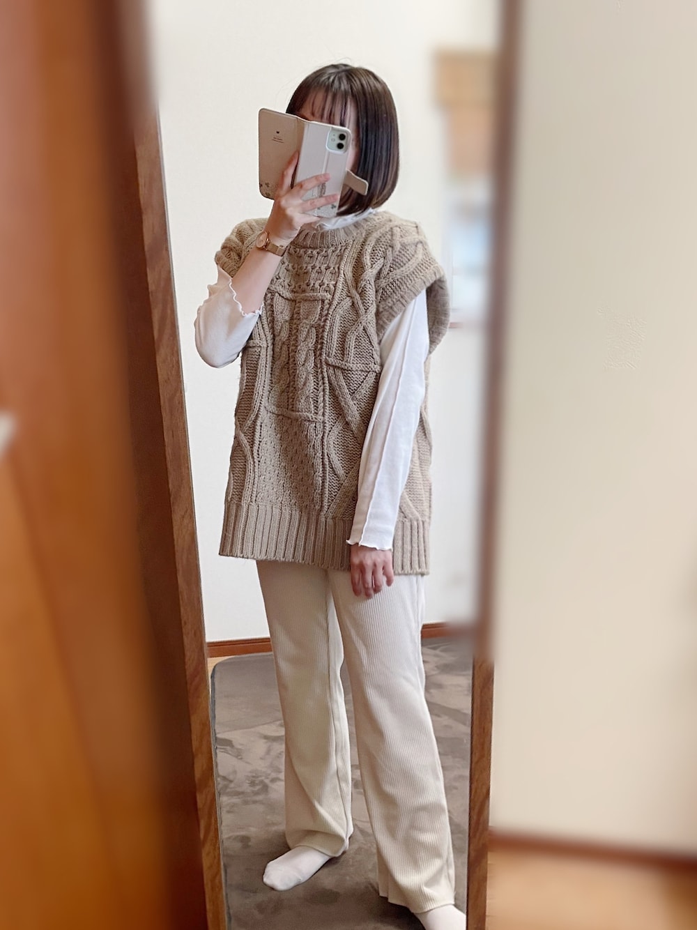 ニットベストコーデ🐵 初のselect MOKAのお洋服です❁︎ フリマでちょこびちゃんから頂きました🥺 とってもお気に入りです♡ 黒は入れずに淡色でまとめてみました♪ ┈┈┈┈┈┈┈┈┈┈ 今日も見ていただきありがとうございます🌼 少しでも参考になれば嬉しいです´`* maroru✲*゚
