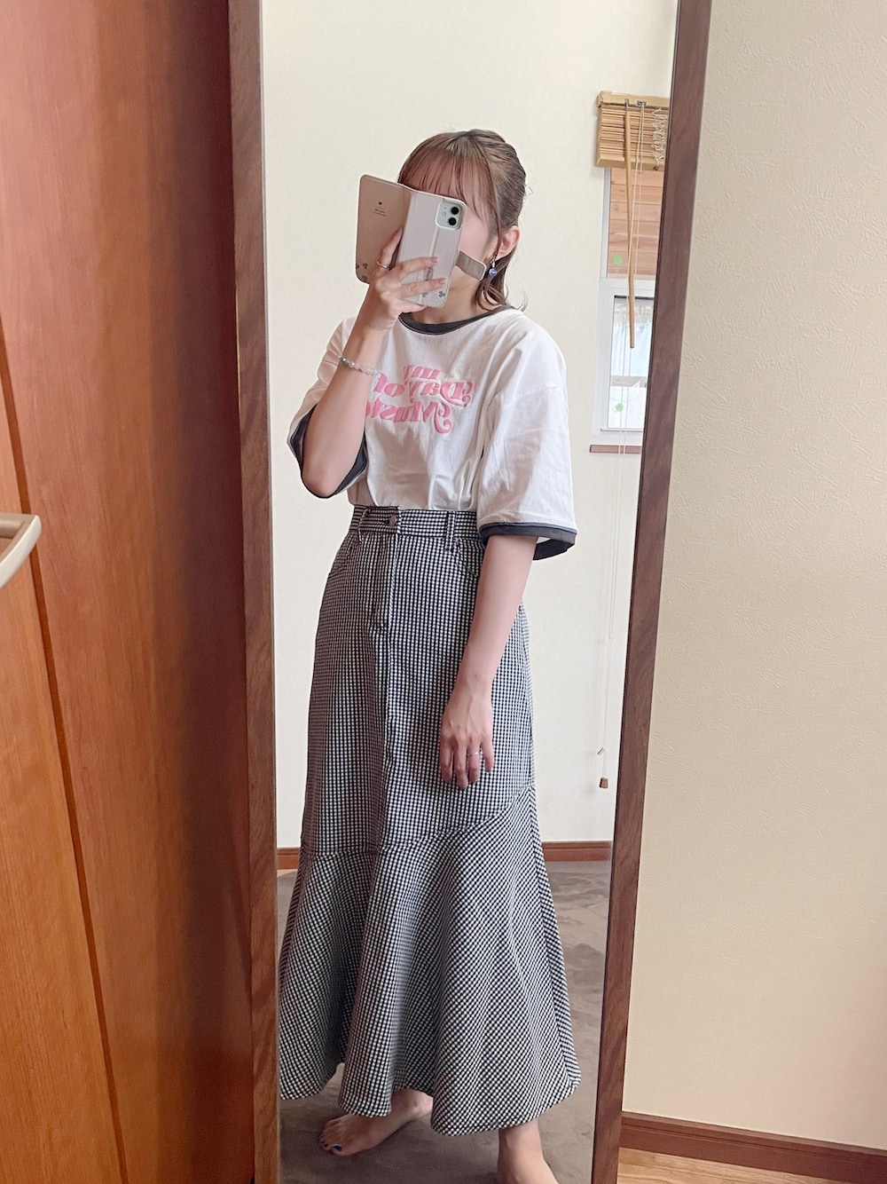 ロゴT×ギンガムチェック🐽 珍しくポップなコーデにしてみました❁︎ ┈┈┈┈┈┈┈┈┈┈ 今日は見ていただきありがとうございます🌼 少しでも参考になれば嬉しいです´`* maroru✲*゚