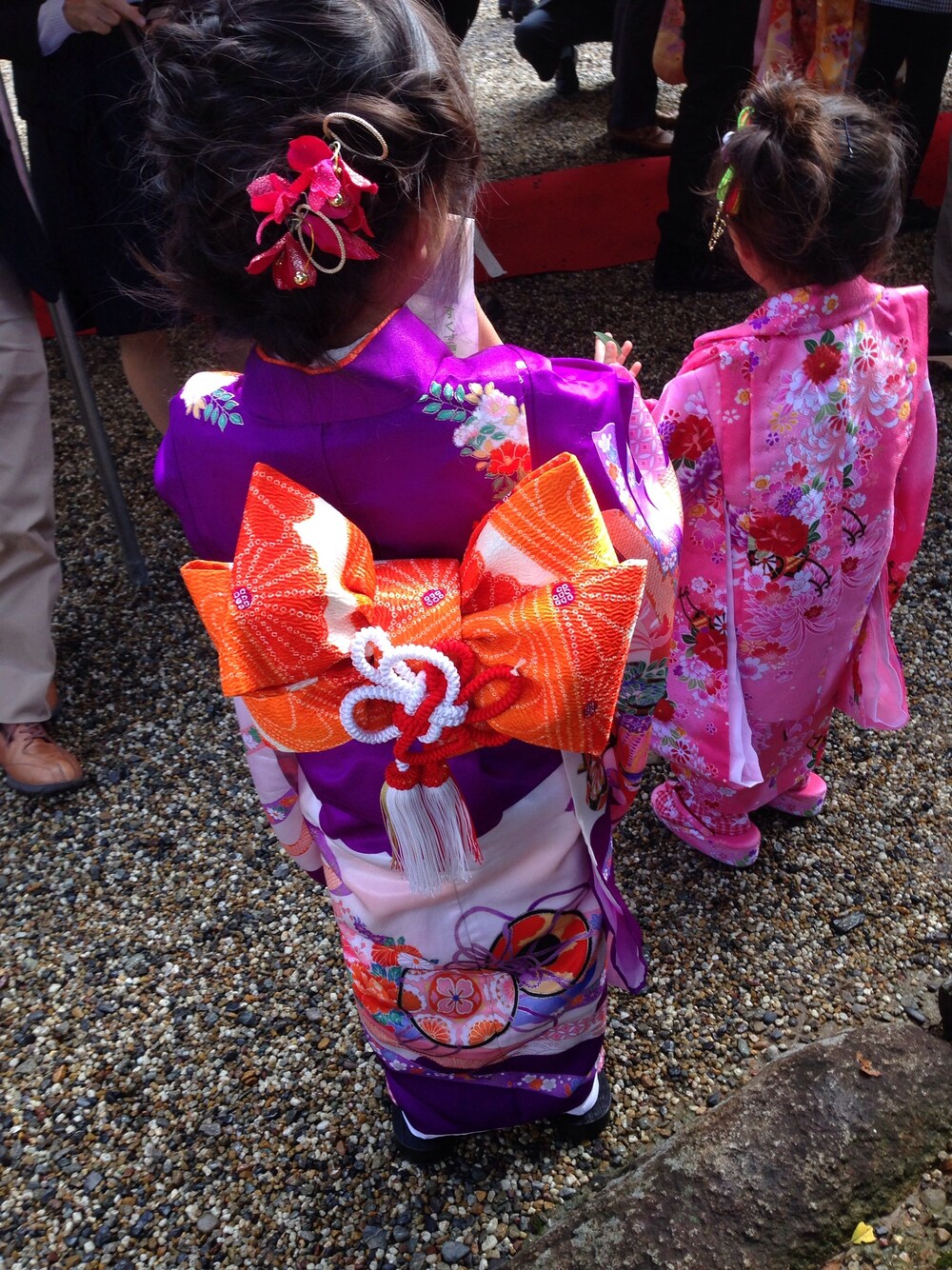 お姉ちゃんの着物は、私の七五三で着たもの☆ 時代感じるわ〜 見にくいけど、髪の毛も頑張りました〜が…すぐ崩れ…まだまだ修行が必要です…(T ^ T)