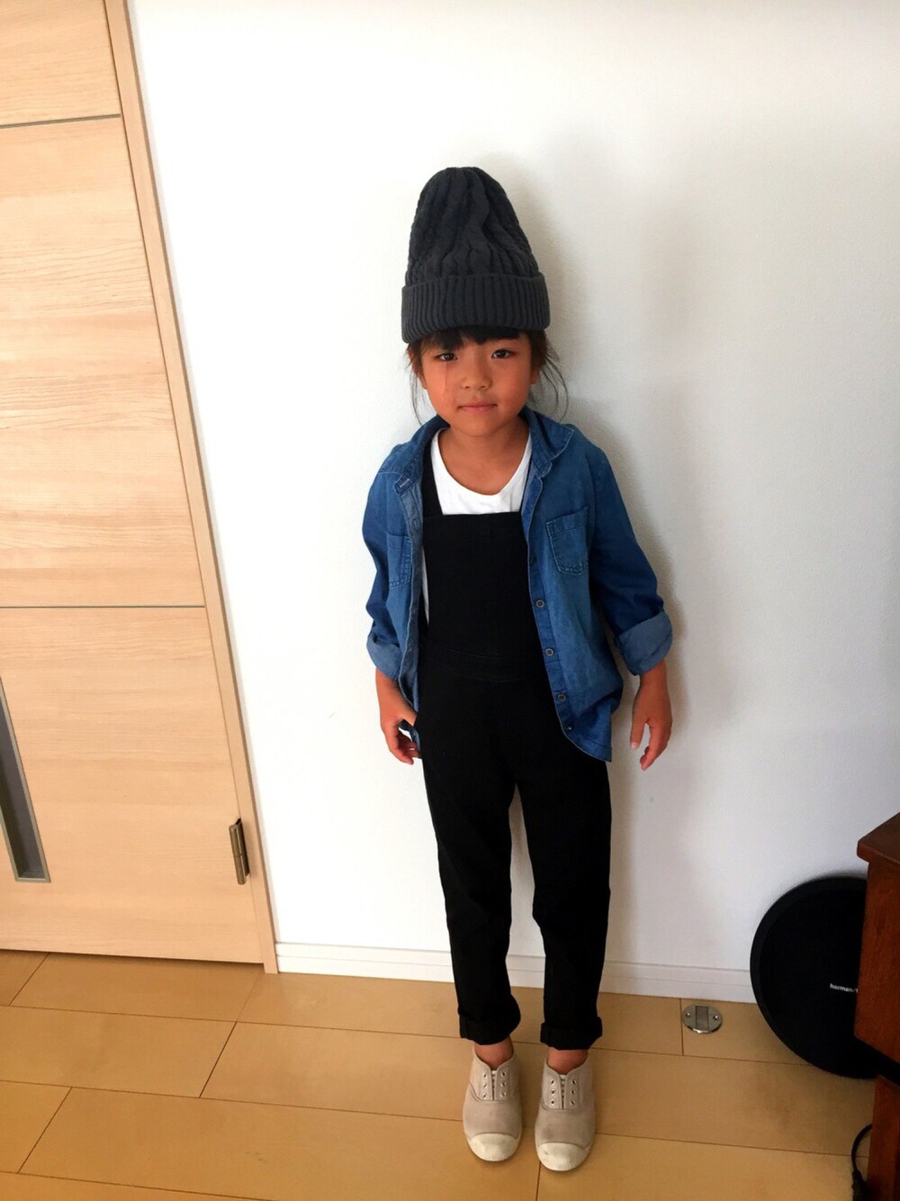 GUのサロペ シルエット好き♡ なーんてことない定番コーデ なんかポイントになるアイテムがほしい‼️