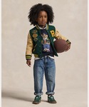 やや寒い日、屋内がメインのスタイリング 旅行と旅行の間の何もしない日なので、さっと羽織っただけの脱力コーデ イエロー〜グリーン〜ネイビーの王道配色 キッズのアメカジスタイルに忠実に 色、柄、刺繍、総柄、ワッペン、プリント、ボアと実際には要素は多いものの、 色数は3色、文脈は統一、重心を下に持っていくことで、ある程度は整理可能 子供らしさもしっかり出たワンマイルコーデ