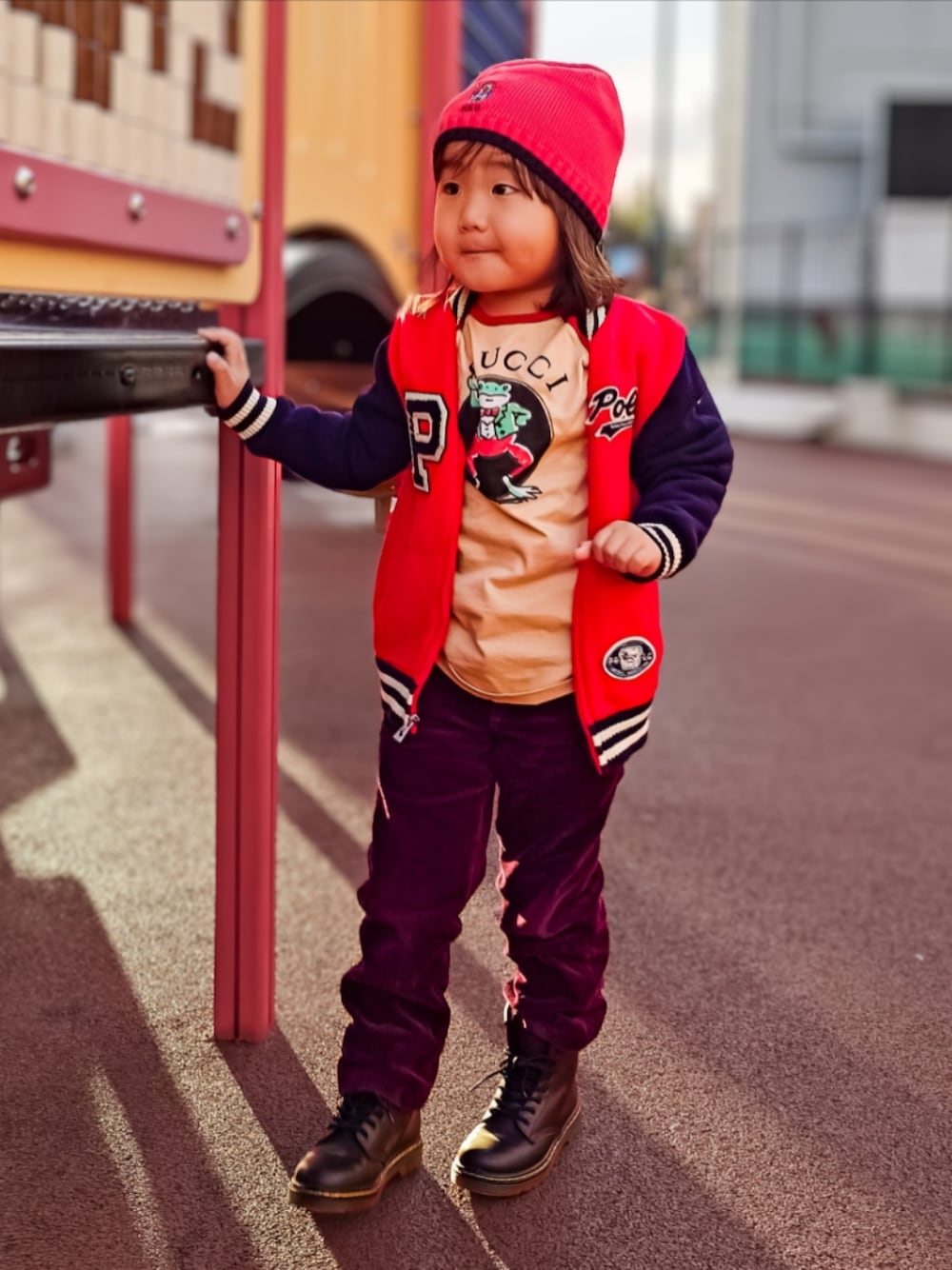 かなり暖かい日の外遊び ブラウン〜レッドで全体をまとめた ワンカラー×トーンレイヤースタイリング