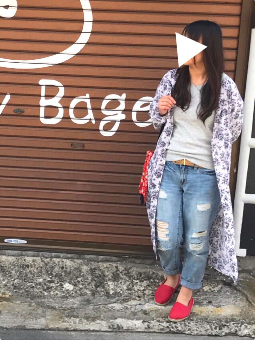 草津に出かけて、寒かったのと日焼け対策で長袖です。 ROPE' PICNICのUV&HappyIce機能付きセーターはサラサラしていて気持ちよく着れます。 本当は尖った赤いパンプスを履いていたのに、撮影の時は諸事情でエスパドリーユ…