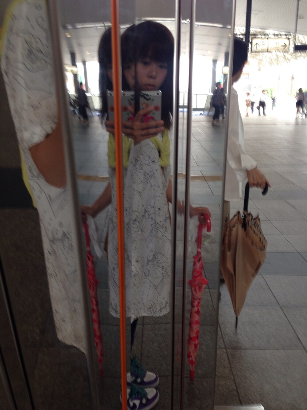 地元の駅にて。 これから妹とお買い物♡ シャツワンピ:セレクトショップにて パンツ:UNIQLO