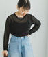 ハーフジップのノースリーブワンピースにシアーカットソーを合わせました⭐︎ 黒で統一したブラックコーデに差し色でブルーのリュックを選びました💙 インナー次第で色々着回せるアイテムです☺️