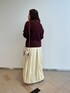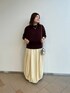 秋カラーを取り入れた晩夏コーディネートです🍂 トップスのニットは二の腕が隠れるのと、体のラインも拾わないのが嬉しいです☺️ スカートはバルーンシルエットでとっても可愛いです🎈 個性を出したい方にはおすすめのアイテムです😊