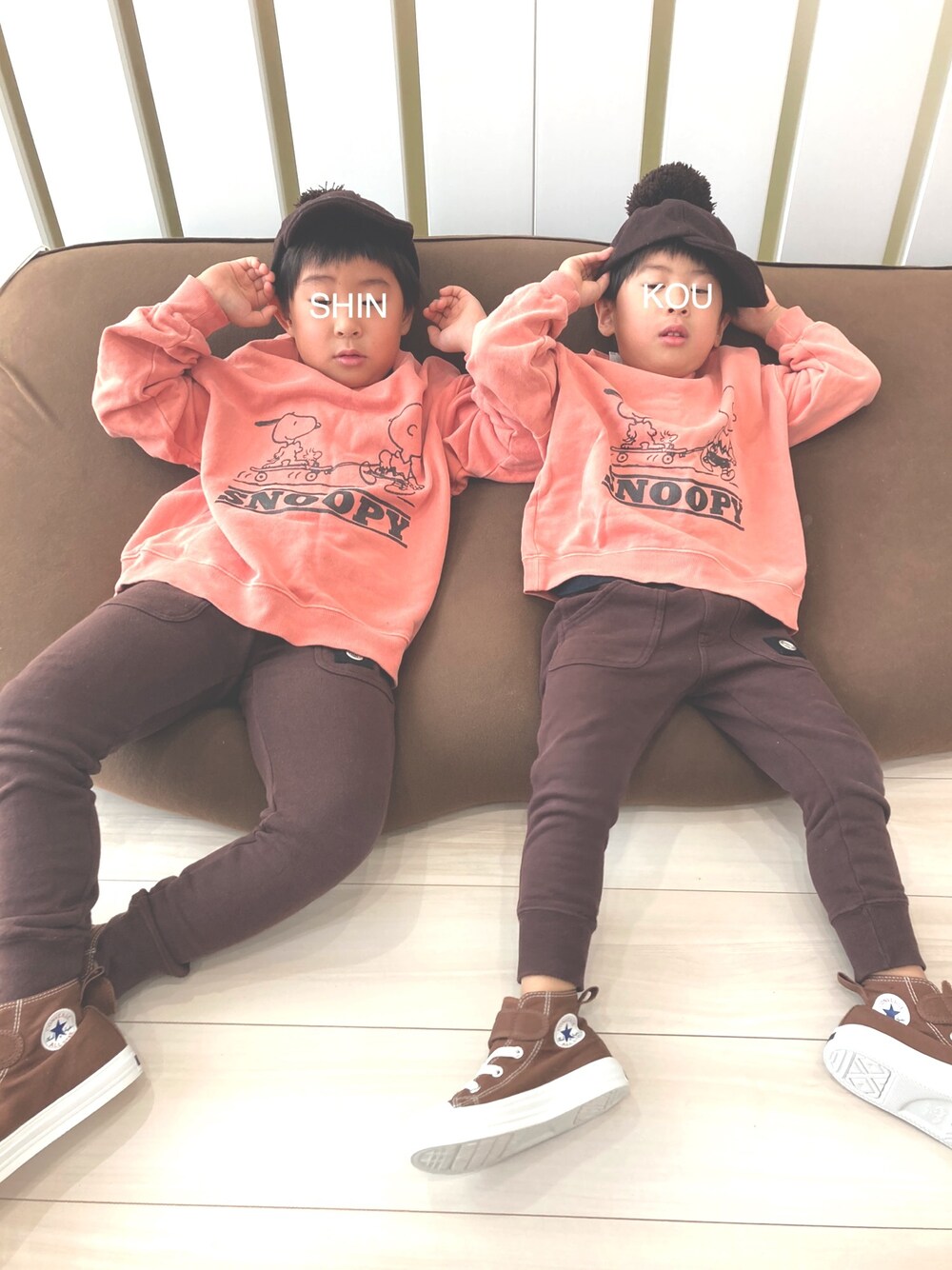 いつも♡、+、follow、📁in、ありがとうございます🙇♀️ とってもうれしいです😊✨ チョコ🍫色にチャレンジしてみました🤗 オレンジピールを足し味に😚 ヨギボーさんも入れてチョコ多めに⤴️🍫してみたよー🤩 忘れてたぁ😫 これ人をダメにするクッション‼️🤭 めちゃダメダメな2人になってるやん🤣 大好きPEANUTSとチョコチョコ🍫コーデでしたぁ🥰 今日もかわいい♡ SHIN→118cm.26kg KOU→102cm.16kg
