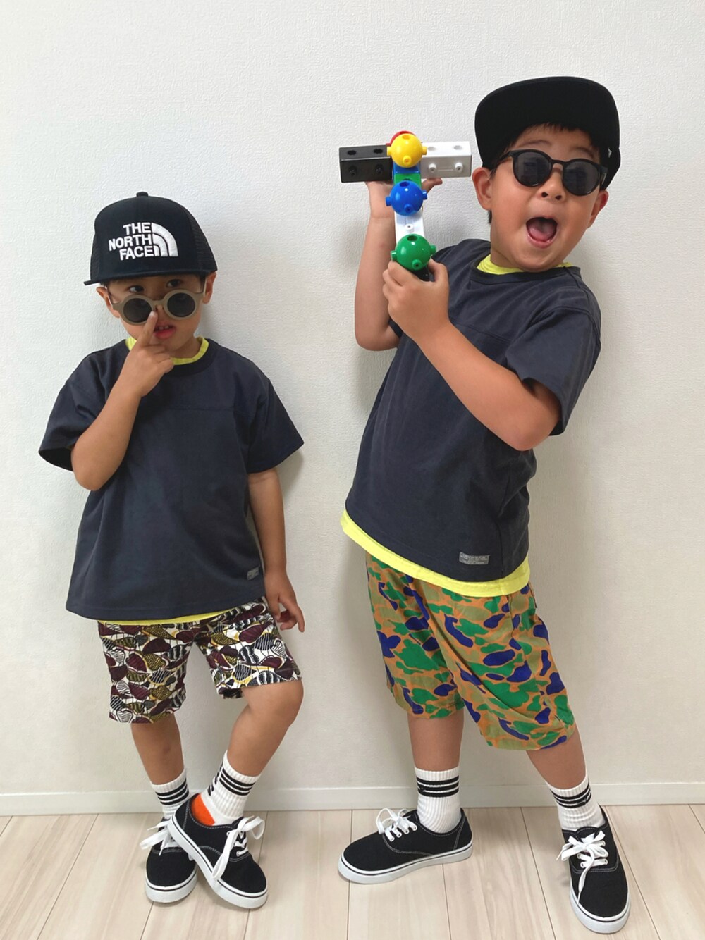 いつも♡、+、follow、📁in、ありがとうございます🙇♀️ とってもうれしいです😊✨ #プチプラ 柄パンツ❤️💛💚💙🤍 トップスはバクプリがかわいいBREEZEさんのTシャツ🖤 に、イエローTシャツのレイヤード💛 うぇーい⤴️ なポーズはなんなんやろ🤣 まっ… 今日もかわいい♡ SHIN→120cm.29kg KOU→106cm.17kg