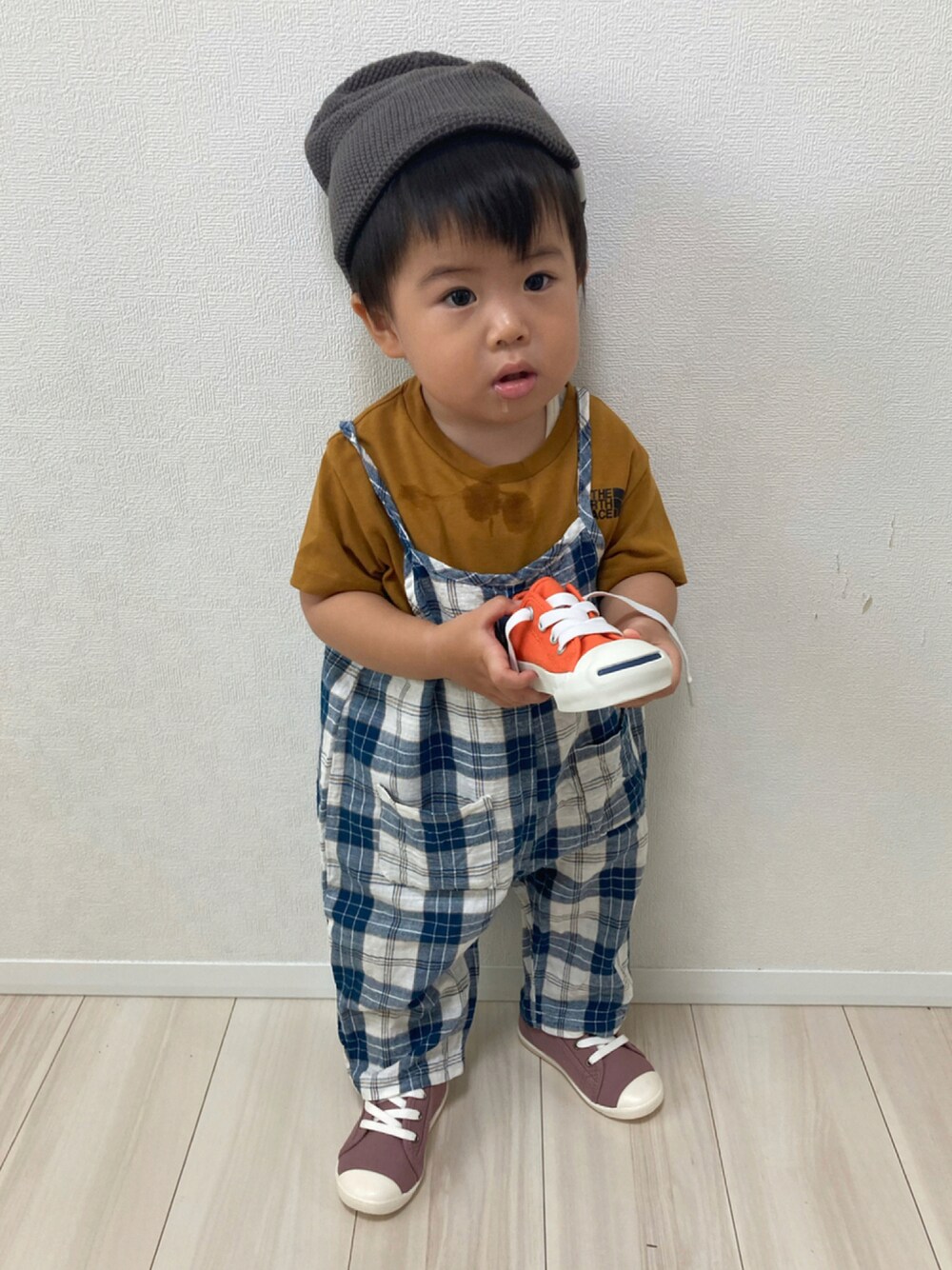 いつも♡、+、follow、📁in、ありがとうございます🙇♀️ とってもうれしいです😊✨ よだぁ〜れ🤤で失礼します🙇♀️ いつかの撮り溜めから📷 秋服いーっぱい出したいのに… 半袖たち早く出さなきゃ💨 シューズ🧡気になる?🤣 履くのはこっち、持つのはこっち、みたいな😂😂😂 そういえば…こんなコーデのboyいたなと思って小窓に🤎💙 同じよぅな色の組み合わせしかできないハハです🙈 今日もかわいい♡ KIYO→78cm.11kg