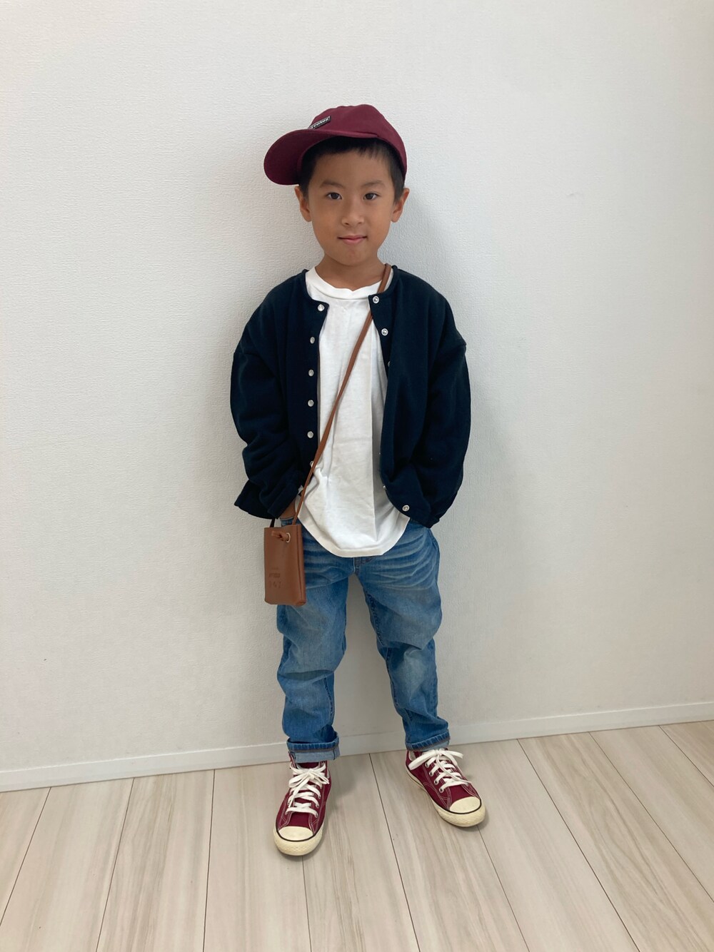 おはようございます.。oO♡ シンプルに… 白T×デニム🤍💙 そこに秋らしくカーディガンを🖤 やっぱ髪短いとキャップが1番しっくりきちゃう🤭 見ていただきありがとうございます.。.:*☆ 今日もかわいい♡ KOU→114㎝.19kg