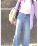 みに。のデニムパンツ「ハイライズワイドジーンズ+」を使ったコーディネート