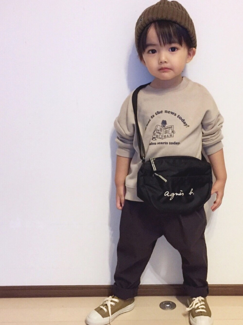 aoi のニットキャップ/ビーニー「リブ編みニットキャップ」を使ったコーディネート