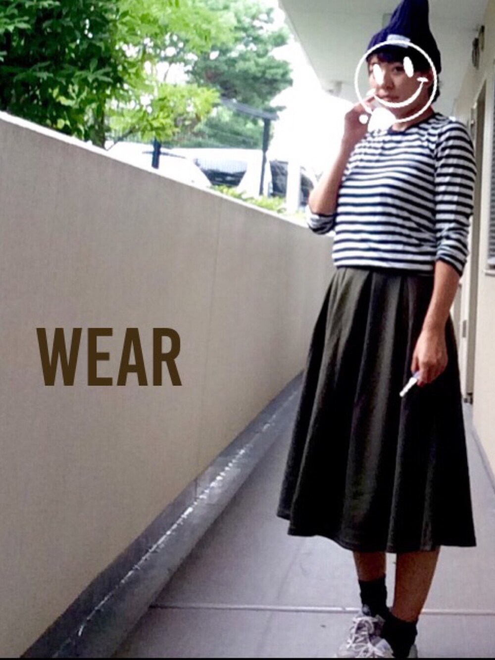 秋コーデ的な… カーキのスカートGUで買ったから履いてみた!とりあえずいつものボーダー&スニーカーと合わせてみました( ´ ▽ ` ) ボーダーは旦那のを拝借。見つかったら怒られる‼︎笑