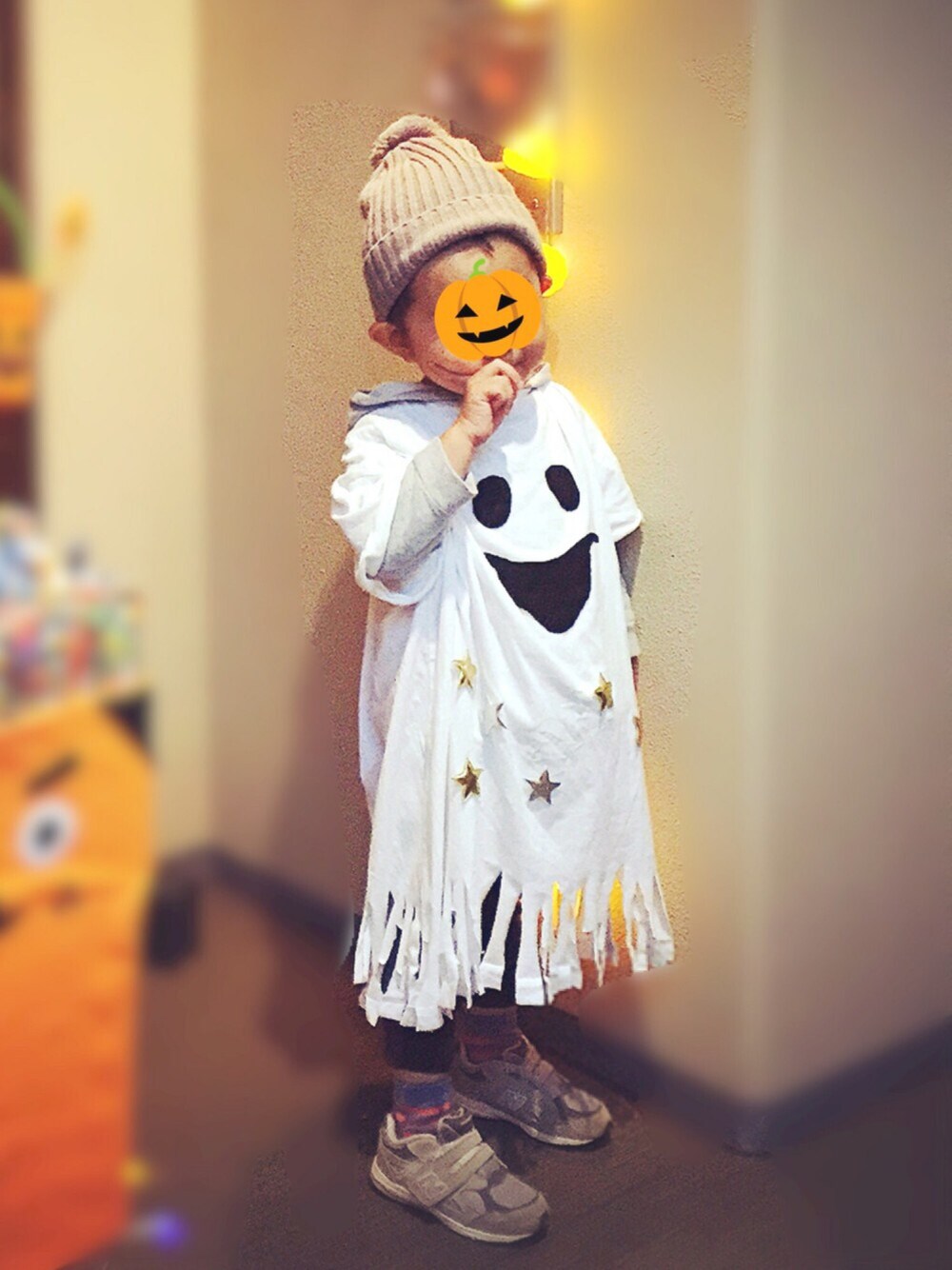 Happy Halloween 🎃 マンションのハロウィンイベント😊 お菓子沢山いただきました🍫 衣装は本人の希望でオバケ👻 かーちゃんのお古Tシャツの 裾をザクザク✂️ 切ったフェルトで👻の顔作って 星の飾り付けました⭐️ いつも見てくださりありがとうございます🍀