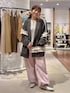 ⭐各アイテムのおすすめポイント  ̄ ̄ ̄ ̄ ̄ ̄ ̄ ̄ ̄ ̄ ̄ ̄ ̄ ̄ ̄ ̄ ̄ 【ジャケット】 ゆったり。オーバーサイズ。 フリルがドッキングされたジャケット😊 薄手でリネンライク素材でお取り扱い楽ちん❣️ 暑くなってきても羽織れるジャケット👌 さらりと羽織れてキレイめでもカジュアルめでも…幅広い場面で使っていただけます👍 【ボトムス】 ゆったり。楽ちん。 さらりと軽い生地のパラシュートパンツ😊 リアルバイ🛍️ 裾が絞れるデザインなので着丈を調整できるのが低身長にはありがたいポイント✨ 私みんは154cmで裾をドロストするとぺたんこなシューズでも合わせられる丈に調整できました✋🏻 軽い生地なので、ボリューム感が程よく履きやすい❣️ ウエストもゴム仕様でノーストレスで履く事ができます👌 シューズをパンプス系すると…大人なカジュアルコーデにまとまります✨ Instagram にもスタイリング載せています❣️ ご覧下さい🙇♀️