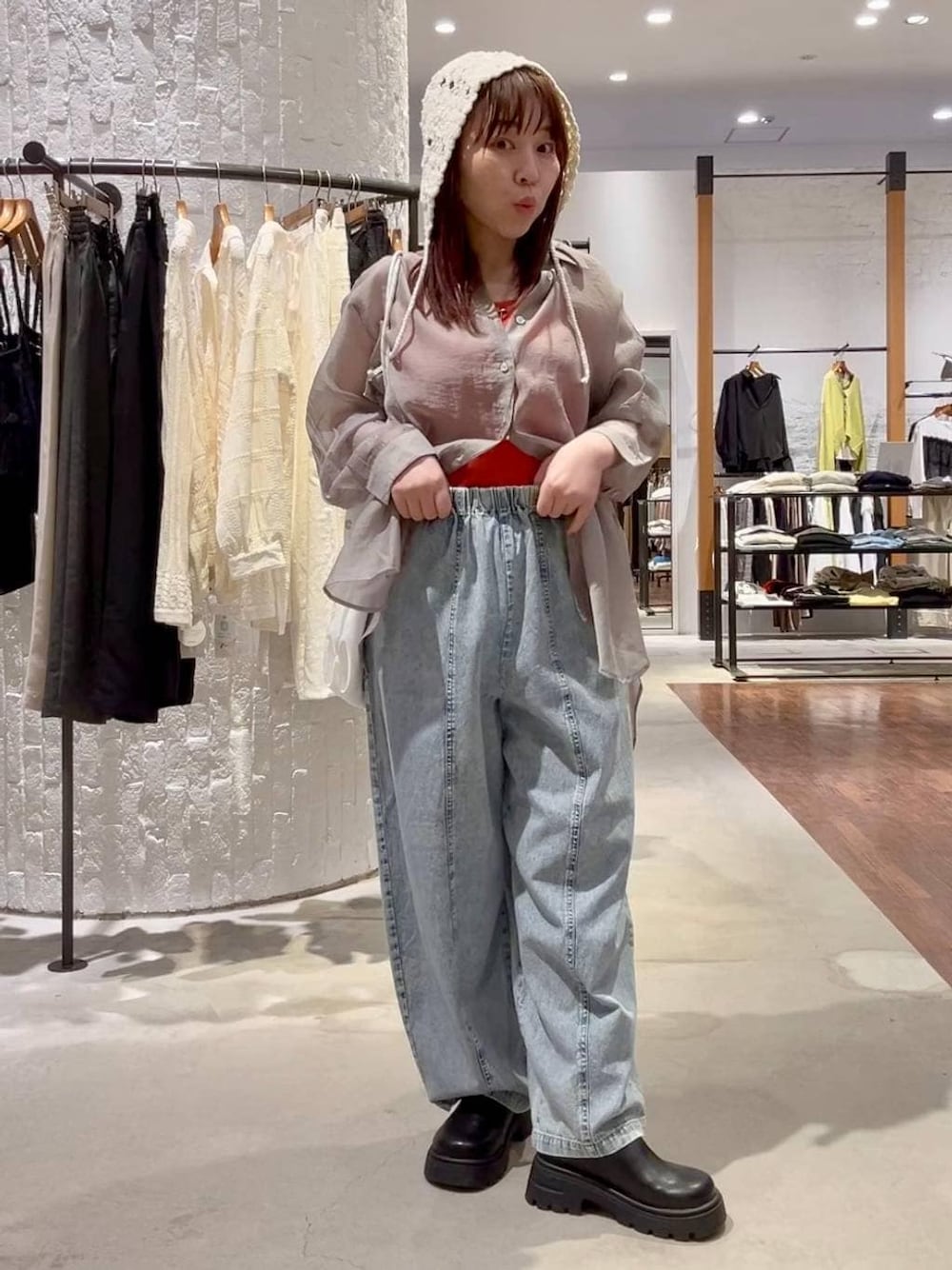 minkey0309(LEPSIM ゆめタウン出雲)のシャツ/ブラウス「シアーシャツ長袖チュニック 147435」を使ったコーディネート
