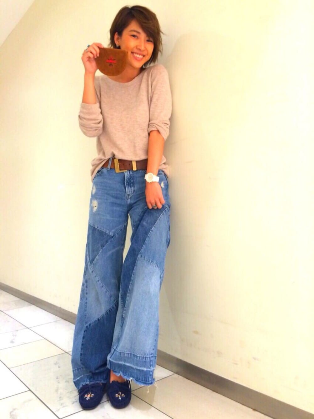MINNETONKASTORE町田東急ツインズのモカシン/デッキシューズ「【ミネトンカ70周年記念限定】Rose Gold 70th Anniversary Kilty/キルティー(ネイビー)」を使ったコーディネート