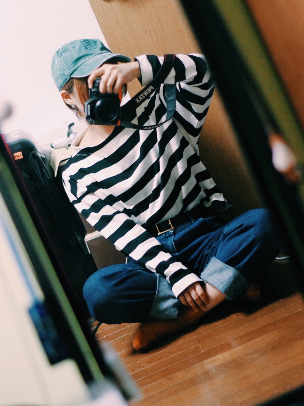 mymさんはいつもけだるけ。のTシャツ/カットソー「WOMEN ボーダーモックネックT(9分袖)」を使ったコーディネート