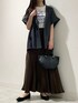 <Lee LOGO HALF-SLEEVE T-SHIRTS> 程よくゆとりがありサイズ感としてはちょうどよかったです。 比較的薄手で柔らかいので着心地も良かったです。 カジュアルコーデに一枚持っておきたいTシャツですね! <ハーフスリーブジャケット> さらっと軽い着心地のジャケットは比較的薄手なので今の時期から合せるアイテム次第で秋にもおすすめです◎ サイズはゆったりしていました。 きれいめな雰囲気ですがゆったりしたサイズ感なのできれいめカジュアルな雰囲気なのでかっちりし過ぎないかと思います! <『MADE IN JAPAN』キュプラフィブリルフレアスカート> さらさらした薄手のスカートはウエストとヒップの部分がぴったりと比較的フィットしていると感じました。 ぴったりですがウエストはゴムなので窮屈ではなかったです◎ 腰回りがフィットするのが苦手な方はトップスをインせずに着て頂くのも良いかと思います◎ <SMELLY so’ twist chain necklace> つけているのを忘れそうになるような軽いつけ心地のネックレスに感じました。 カジュアルスタイルに敢えてきれいめなアクセサリーを合せることで大人カジュアルなスタイルに◎ もちろんきれいめなスタイルの時に合わせるのもおすすめです! <ラウンドミニバッグ> 形が可愛いバッグです!私自身は持ってみるとバッグ自体の重さは重いと感じませんでした。 三つ折り財布とミニ化粧ポーチ、携帯は余裕で入りましたが、お手持ちのアイテムのサイズによるかと思いますので、 サイズ表とお手持ちのアイテムのサイズを照らし合わせていただけたらと思います。 <やわらかスエードバレエシューズ> 普段24.5㎝〜25㎝を履いている私には38のサイズが薄手のパンプス用のソックスでかなりぴったりなサイズ感でした。 やわらかいのでそこまで窮屈には感じませんでしたが、パンプス用のソックス以外のソックスでは窮屈になり履けないな、、、と思いました。