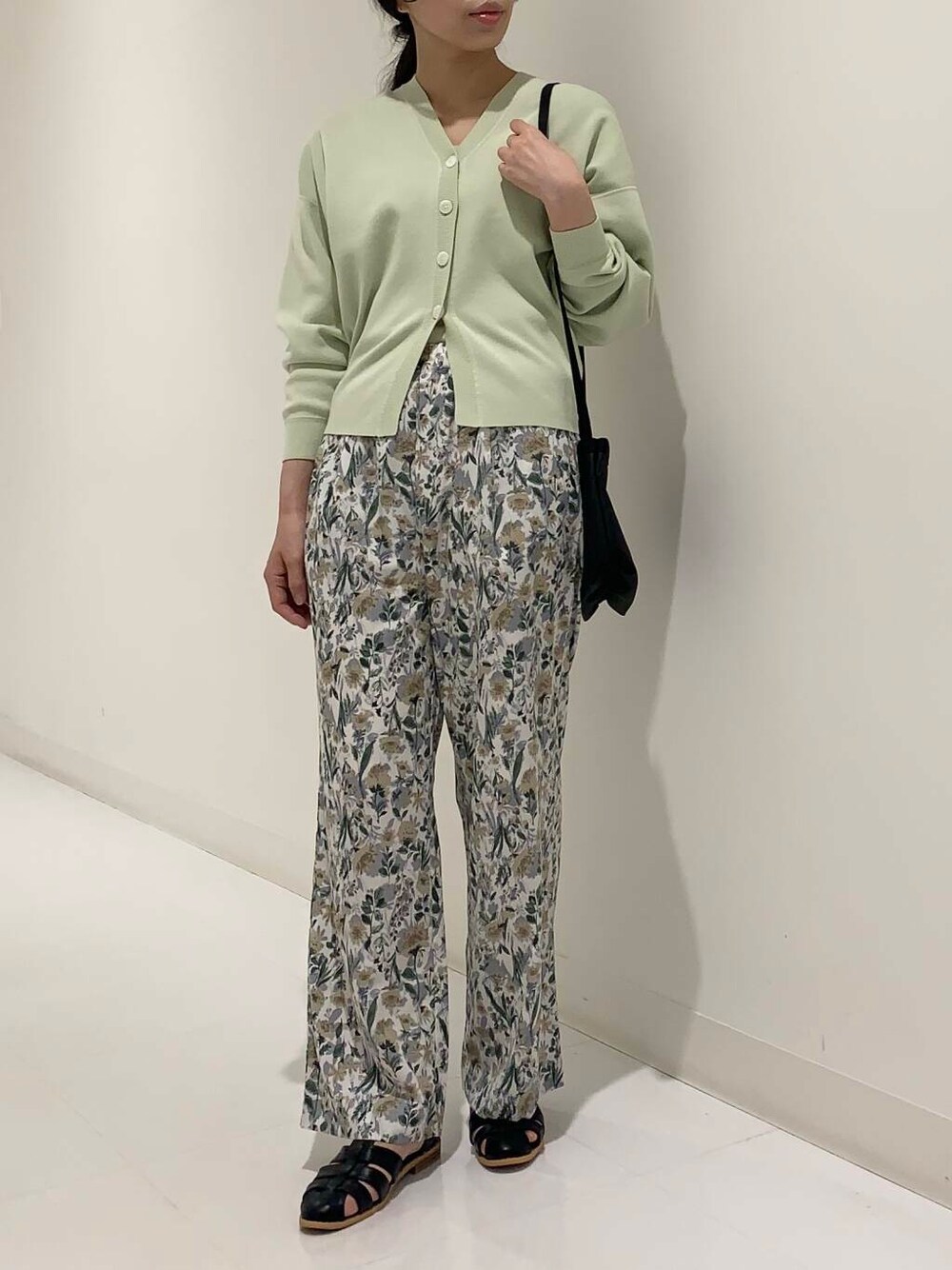 甘いものが食べたくて仕方なくなると止まらないminamiです^^ 本日は柄アイテムを使用した大人カジュアルなスタイルです◎ <スウェットライクカーディガン> さらっと柔らかい生地感のカーディガンは程よくゆとりのあるサイズ感でした。 薄すぎず程よく厚みのある生地で季節の変わり目にぴったりです。 Vネックなので前の釦を全て閉じてもすっきり感があります◎ <抗菌防臭カップ付デザインタンクトップ> フィット感のあるタンクトップでした。 個人的にはカップのホールド感も程よくあり着心地が良かったです。 ヘルシーなデザインも可愛いです◎ <『イージーケア』フラワープリントイージーパンツ> 165㎝でMサイズを履いています。 ウエストゴムはフィット感がありますが窮屈な感じではなく紐で調節できるのが良いポイントですね! 個人的にはヒップはちょうど良く他の箇所は程よくゆとりがありました。 Mサイズの丈感もたっぷり丈が好きな私にはちょうど良いと感じました◎ <『別注』DRIFTER×DOORS ショルダーバッグ> 小さめですが三つ折り財布やリップ、ハンカチはしっかり入りましたし斜めがけもできるのでお出かけにぴったりのバッグです。 各アイテムのサイズにもよるかと思いますのでサイズ表を参考にご覧いただけますと幸いです◎ <グルカサンダル> 普段24.5㎝〜25㎝を履いている私には38のサイズがちょうど良かったです。 窮屈感なく着用できました。 ※感じ方には個人差がございます。 ※ヘアアクセサリーは私物です。 ・・・・・・・・・・・・・・・・・・・・・・・・・・ コーディネートや商品についてご相談がございましたらお気軽にチャットにお声がけください😌💬 <button><a href="https://www.urban-research.jp/special/onlinestore_chat/" style="color:black">【チャット相談】</a></button> ・・・・・・・・・・・・・・・・・・・・・・・・・・