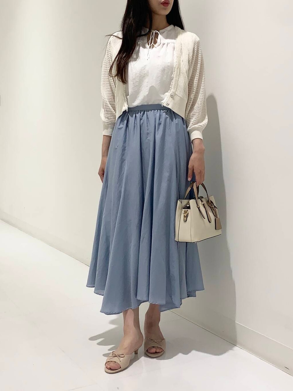 <フリルブラウス> 柔らかい薄手の生地感のブラウスです。 透け感があるのでインナーは必要です! ちょうど良いサイズ感でインしてもインしなくても可愛いアイテムでした◎ フリルもボリュームが出すぎないので肩幅広めでガンダムな私も比較的合わせやすかったです。 ボリュームが気になる場合は首元の紐を垂らして縦のラインを出すのもおすすめです! <柄編みフリンジカーディガン> ショート丈のカーディガンはパンツ、スカート、ワンピースなど合わせやすいです◎ 個人的にはチクチク感は感じずに着用できました! 比較的薄手なのでこれからの時期の羽織物にぴったりだと思いました。 <コットンシルクヘムデザインギャザースカート> 165㎝で少しハイウエストめに履くと足首がしっかり見える丈感でした。 ソフトな生地感なのでふんわり感がありますがボリュームは出過ぎない印象です。 爽やかなsaxのお色は白のトップスと合わせるとより清涼感がでますね◎ <チャーム付ミニバッグ『Ssize』> コンパクトサイズなのに収納力のあるバッグです。 きれいめにもカジュアルにもさっと合わせやすいかと思います! <『MADE IN JAPAN』リボンミュール> 普段24.5㎝〜25㎝を履いている私には38のサイズがぴったりサイズでした。 アッパー部分も柔らかいのでぴったりでも痛みは感じませんでした。 ※感じ方には個人差がございます。 ・・・・・・・・・・・・・・・・・・・・・・・・・・ コーディネートや商品についてご相談がございましたらお気軽にチャットにお声がけください😌💬 <button><a href="https://www.urban-research.jp/special/onlinestore_chat/" style="color:black">【チャット相談】</a></button> ・・・・・・・・・・・・・・・・・・・・・・・・・・