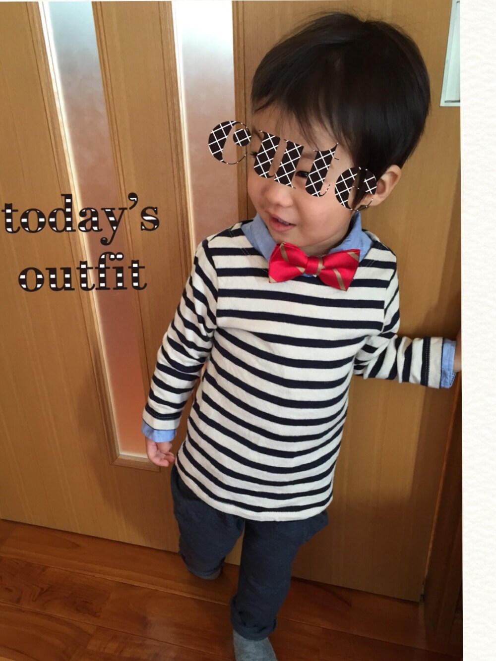 蝶ネクタイ、はじめはイヤイヤ言っていたけど、 旦那さんと可愛いよ〜と褒めたら まんざらでもないご様子(o^^o)