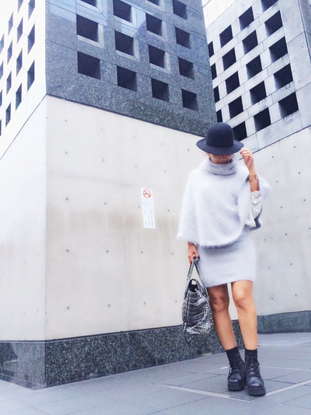 京都にきました 山の上は寒いかもと、少し早い冬仕様⛄️ 薄い薄い紫がかった水色が気に入ってるセットアップボレロです