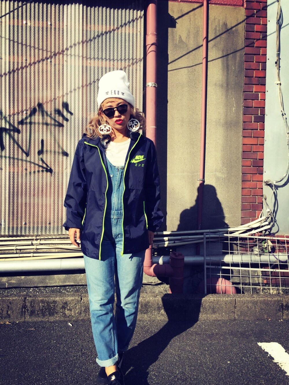 ただいま全国ツアー中 宮崎の合間のお散歩 オーバーオールに MOVEナイロンジャケットをあわせました