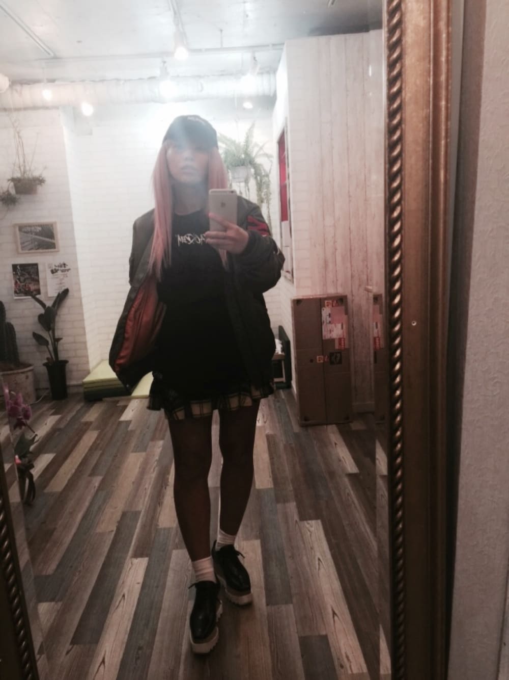 ストレートなストリートスタイル ma1はAPE 久しぶりのスカートはunifです 靴は最近お気に入りのstella キャップはattackdem