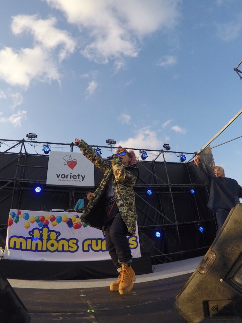 この日は 北九州の野外ライブ ミニオンズランに出演 ミニオンのコスチュームに当て込んでオーバーオールでコーディネートしました
