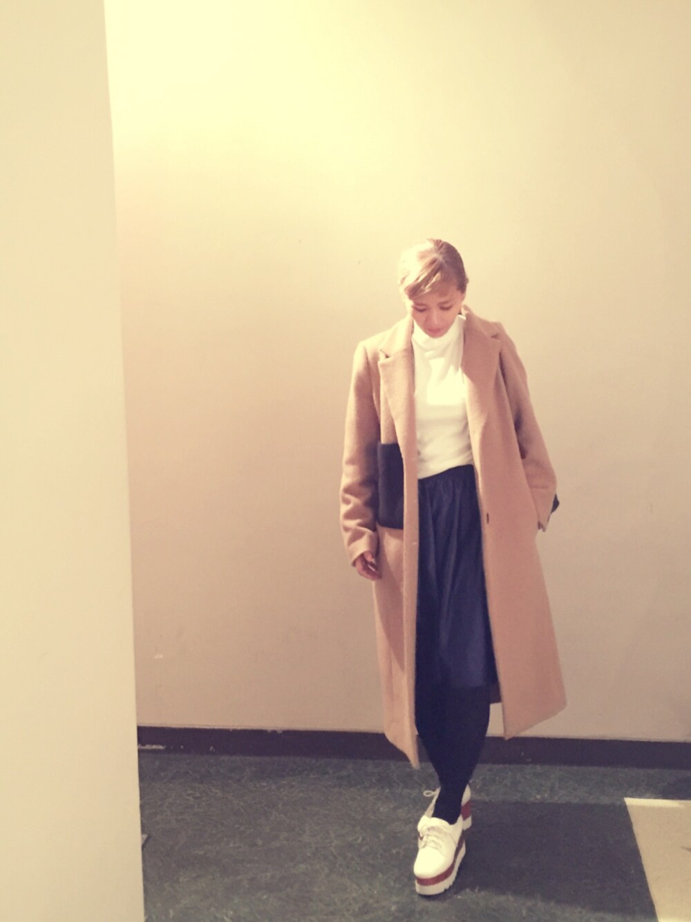MINMIのチェスターコート「カラーポイントエッグコート」を使ったコーディネート